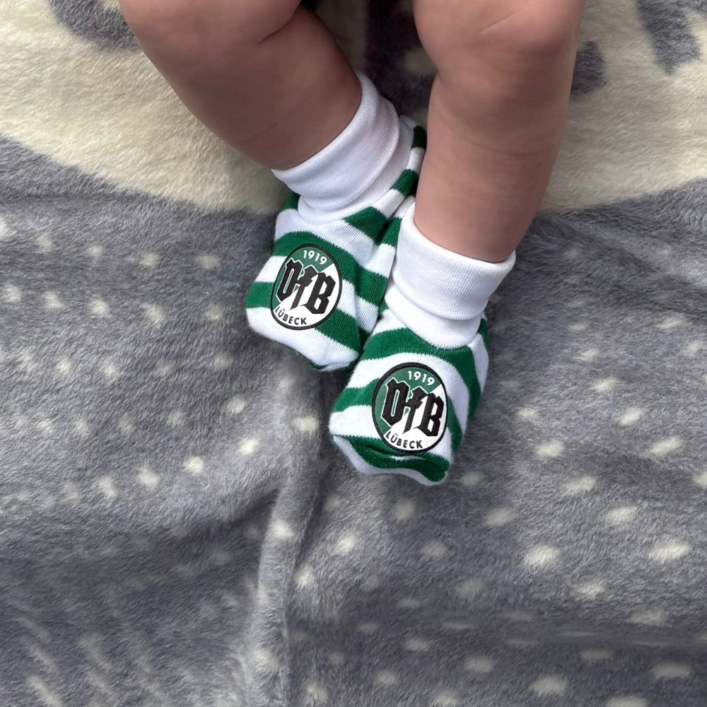 Bekleidung und Accessoires für unsere kleinsten VfB Lübeck Fans. Damit das Leben in Grün und Weiß starten kann.